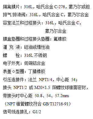 Ø 性能特点 · 精度高、稳定性好、量程、零点外部连续可调; · 体积小、重量轻、坚固抗振; · 无机械可动部件,维修工作量少; · 全系列统一结构,零部件互换性强; · 单向过载保护特性好; · 接触介质的膜片材料可选择316L、HC等耐腐材料; · 二线制4-20mADC信号、只能HART现场总线协议。 |